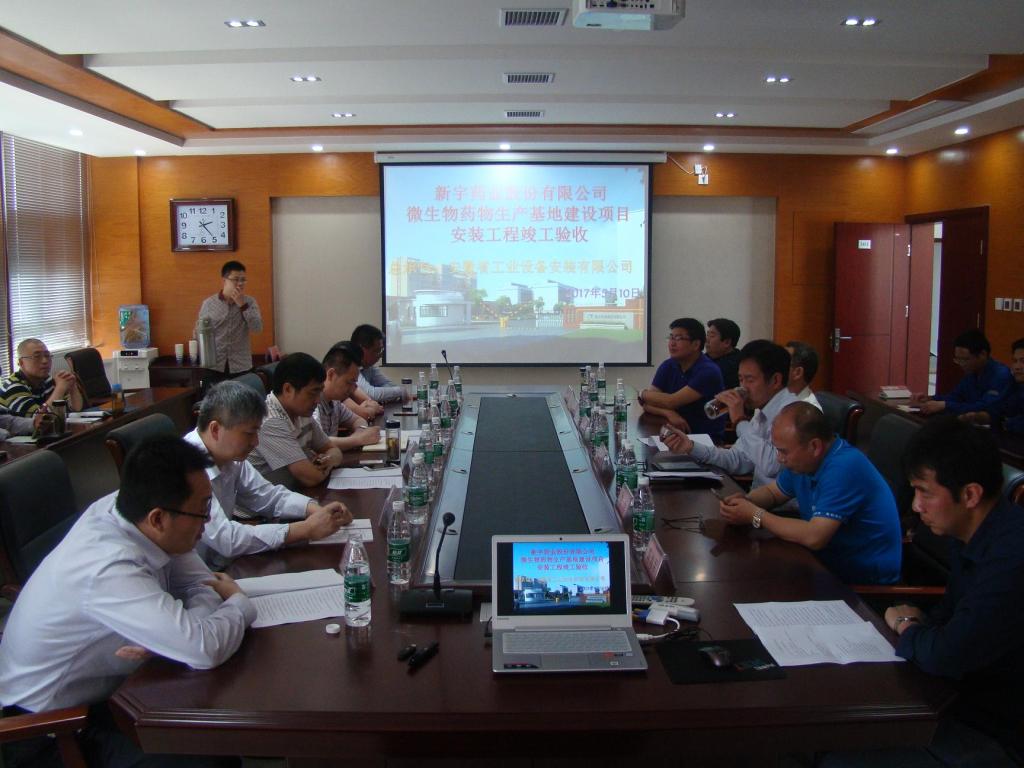 2017年5月10日下午,新宇藥業(yè)微生物藥物生產(chǎn)基地項(xiàng)目安裝工程竣工驗(yàn)收會(huì)議在新宇藥業(yè)股份有限公司召開(kāi),新宇藥業(yè)股份有限公司總經(jīng)理萬(wàn)曉飛、總工程師朱立元、總會(huì)計(jì)師蔣峰、項(xiàng)目總指揮李利、副總指揮李民、陳海軍以及相關(guān)部門同志參加會(huì)議,安徽安裝公司黨委書(shū)記胡六中、副總經(jīng)理劉安俊、紀(jì)委書(shū)記李寬旭、總會(huì)計(jì)師張?jiān)蟆⒖偣こ處焻抢^成等應(yīng)邀出席。