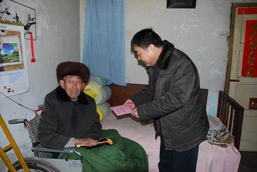 1月19日上午,集團(tuán)公司董事長、總經(jīng)理胡運(yùn)成、工會副主席李鵬飛、老干部處處長胡賢文等一行,在公司總經(jīng)理王軍邦、黨委書記戴樹明、工會主席樊德生等同志的陪同下,冒著冬日的嚴(yán)寒,來到省安公司分別登門看望了省勞模、老黨員陳懷和及特困老職工曹明國及其家人,并給他們送去了慰問金和親切的問候。